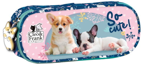 Cleo és Frank kutyás ovális tolltartó - So Cute Kutyás tolltartó lányoknak Kutyás egyrekeszes tolltartó tökéletes választás kutya rajongó kislánynak. A praktikus ovális tolltartó egy cipzárral nyitható, benne tárolhatod az összes kedvenc írószered, ha színezni van kedved könnyen magaddal viheted. Cuki francia buldog és corgi kölykök veled lesznek alkotás közben, akár