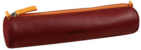 Tolltartó Clairefontaine Rhodiarama 21,5x5 cm hengeres, műbőr, burgundivörös Olasz műbőrből készült, prémium minőségű hengeres tolltartóMéret: 21,5 x 5 cmDombornyomott Rhodia logóvalElefántcsontszínű belső bélésselNarancssárga varrással és cipzárfogóval, mely szintén műbőrből készült