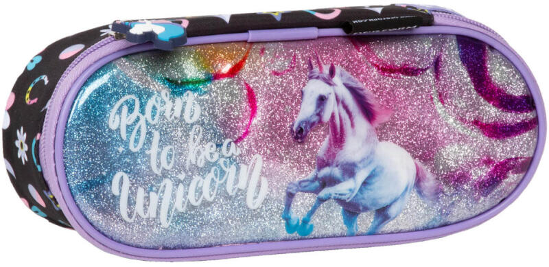 Unikornisos ovális tolltartó - Born to be a unicorn (P1AJR15) egyterű belsejében van egy kihajtható fül, melynek egyik oldalán kis cipzáras zseb, másikon gumifülek találhatóak. A tolltartóban elfér az összes írószer, amire az iskolásoknak szüksége van. A cuki mókus mintás tolltartó praktikus kiegészítője a nagylányok iskolatáskájának.