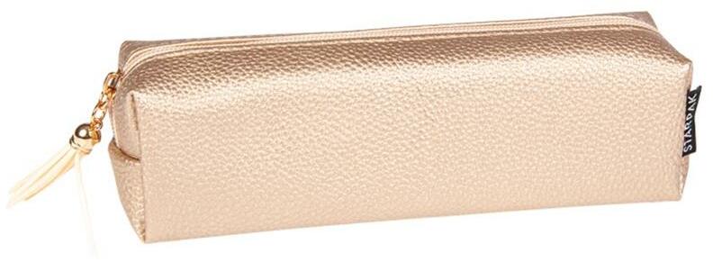 Starpak szögletes tolltartó rojttal - Arany A Starpak szögletes tolltartó arany és bőr hatású anyagával színével hívja fel magára a figyelmet. Praktikus írószertartóba minden írószer belefér, amire az iskolában szükség lehet. Vagy akár neszesszernek is használható. A nagy rekeszbe a különböző formájú egyéb eszközök rögzítés nélkül tehetőek. Jellemzői: – 1