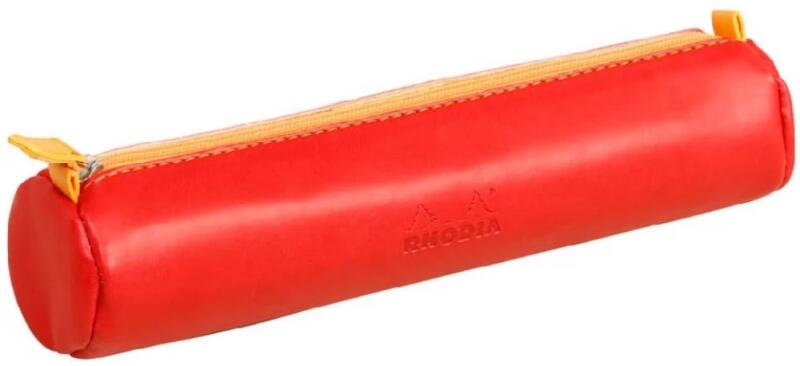 Olasz műbőrből készült, prémium minőségű hengeres tolltartó Méret: 21,5 x 5 cm Dombornyomott Rhodia logóval Elefántcsontszínű belső béléssel Narancssárga varrással és cipzárfogóval, mely szintén műbőrből készült Olasz műbőrből készült, prémium minőségű hengeres tolltartó Méret: 21,5 x 5 cm Dombornyomott Rhodia logóval Elefántcsontszínű belső béléssel