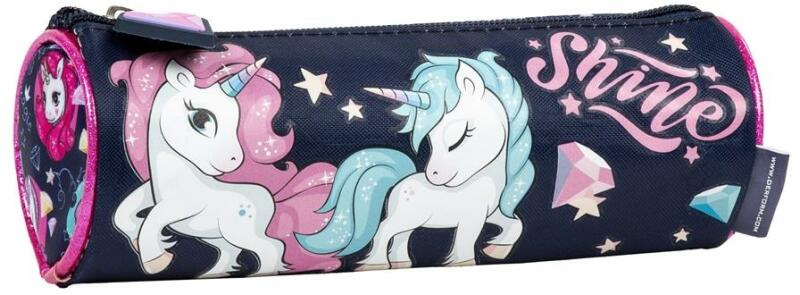Unikornis henger alakú tolltartó - Shine gyönyörű egyszarvúak képével díszítve. A cipzár húzóján gumis szárny található. Egyterű belsejében elfér a rengeteg színes ceruza, radír, hegyező és kis vonalzó.