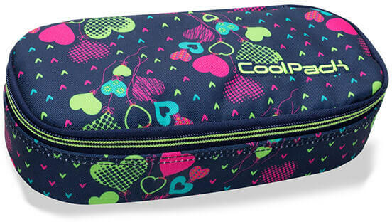 Cool Pack márkájú tolltartó nagyoknak. Az ovális formájú cipzáras tolltartó közepén van egy klapni, melyen 4 gumipánt található ceruzáknak, és egy hálós cipzáras hálós zseb. Mérete: 23x5x9 cm. Lányos tolltartó színe: kék szíves mintával. Válassz a teljes Cool Pack Lime Hearts kollekcióból >>