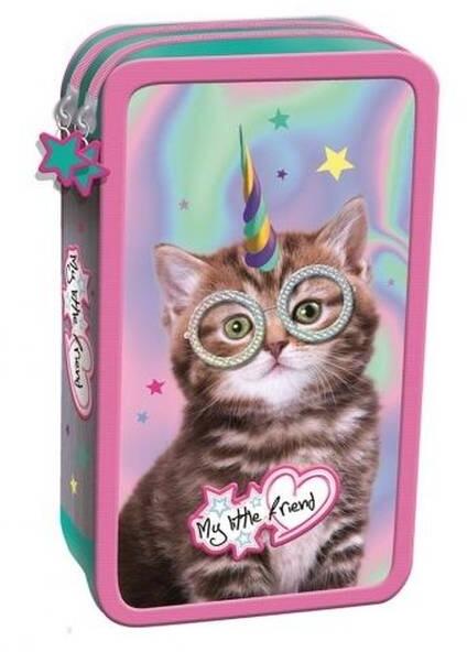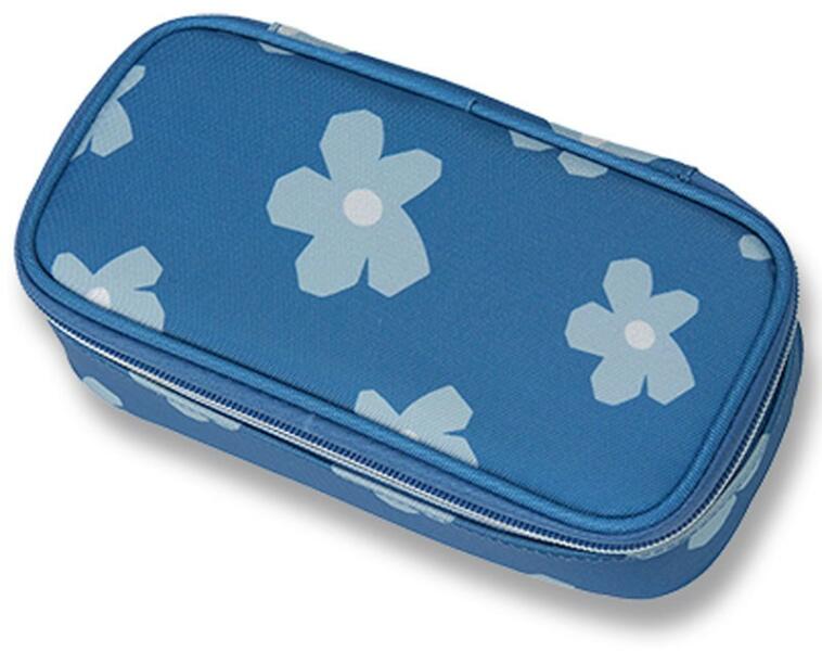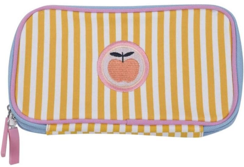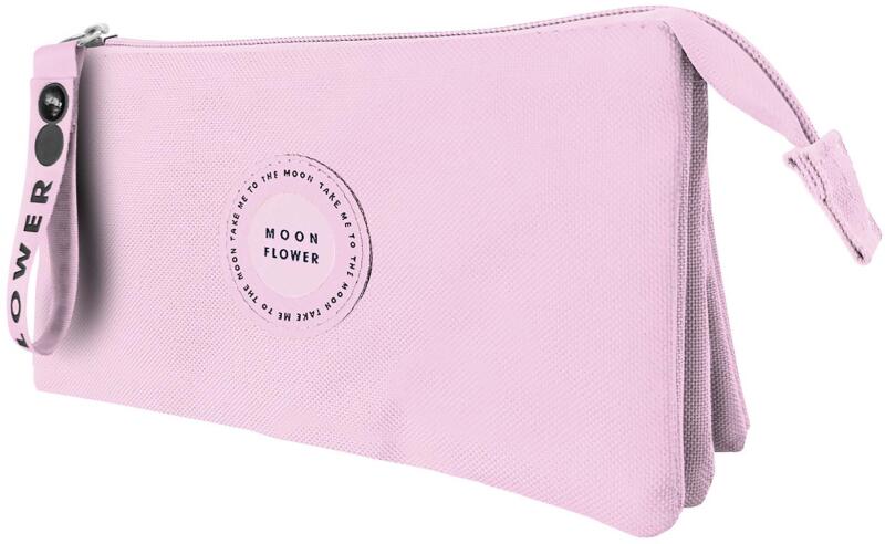 Többszintes, töltetlen, cipzáras tolltartó. Belül textillel bevont merev lapokkal, gumis kialakítással az írószerek tárolásához és egy cipzáras belső zsebbel.