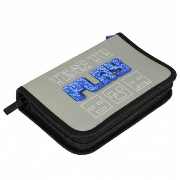 Time to Play - PIXEL feliratú két klapnis, kihajthatós tolltartó fiúknak. Belső kialakítás: 6+8+10 gumipánt írószereknek, valamint gumipánt radírnak, hegyezőnek és vonalzónak, a kihajtható rész külső felén 1-1 órarendtartó található. Mérete: 21x4x14 cm. Színe: szürke/kék. - minecraft -