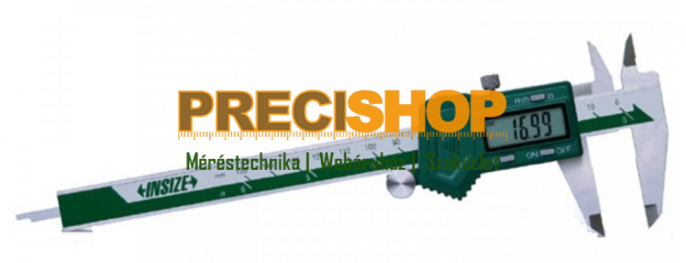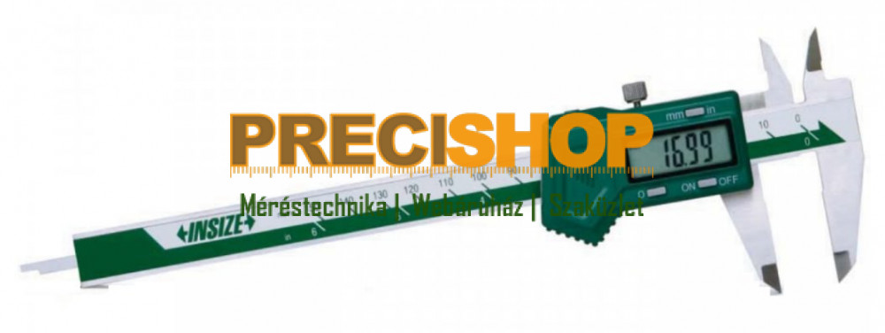 Az Insize digitális tolómérő a balkezes használóknak van tervezve, 0-200 mm tartományú, 0.01 mm felbontással, lapos mélységmérővel és mozgató kerékkel rendelkezik. • Tartomány: 0-200 mm / 0-8 • Felbontás: 0.01 mm / 0.0005” • Pontosság: ±0.03 mm • Kapcsológombok: be/ki (on/off), nullázó (zero), mm/inch • Automatikus kikapcsolás, bekapcsoláshoz mozgatni kell a di