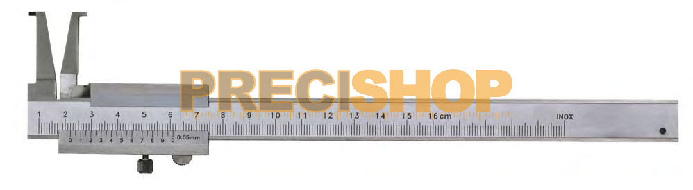 Méréstartomány: 10-160mm; Csőrhossz: 25mm, Rozsdamentes acélból készült; Leolvasás: 0,05mm; Matt krómozott, edzett