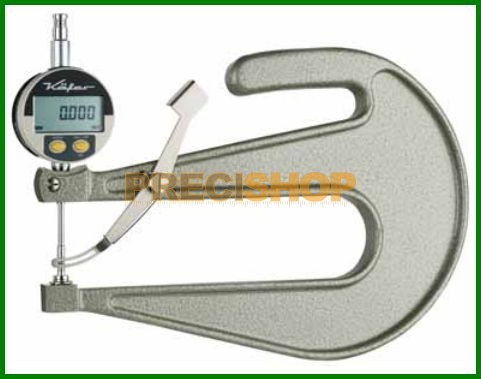 Fóliák, lemezek, papír, gyors-vastagságmérésére, tapintó alul/felül d=10mm, 25/0,001mm digitális órával, kengyel benyúlása 200mm, adatkimenttel. Digitális mérőóra funkciói: Nullázás (ZERO), mm/inch átváltás, Adattartás (HOLD), Ref I / Ref II, Mérési irány váltása, adatátvitel. Azonos áron rendelhető az adatlapon látható a, b, d vagy e jelű tapintóval is. Rendel