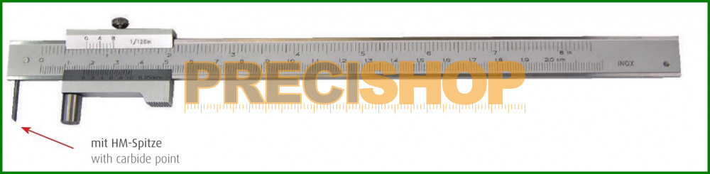 • rozsdamentes acél, mattrkómozott • leolvasás 0,05 mm; 1/20 mm + 1/28” • cserélhető keményfém karctű