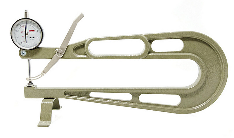 Egyszerű kézi mérőeszköz vastagságméréshez. Öntvény kengyel 15 mm benyúlással. 20 mm vastagságig 0,1 mm leolvasási pontosság. A tapintó átmérő: 6,35 mm