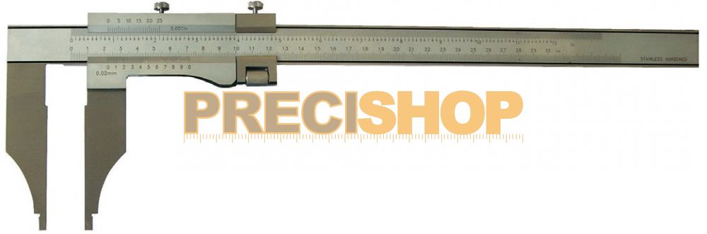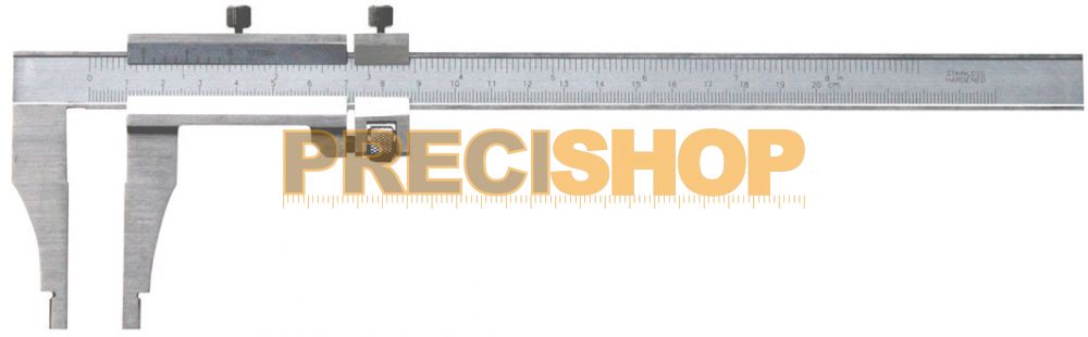 Precíziós műhelytolómérő 300 mm, DIN 862, Finombeállítóval külső-, belső- és szintmérésre, Pofa 100 mm,méréstartomány 300 mm, Rozsdamentes acél, Mattkrómozott skála, Csúszka egy darabból