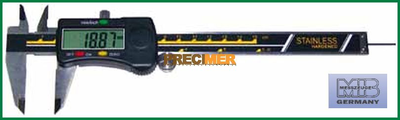 Digitális tolómérő DIN 862, üvegsínnel, rozsdamentes acélból, méréstartomány 150 mm, Leolvasás 0,01 mm / 0,0005“,