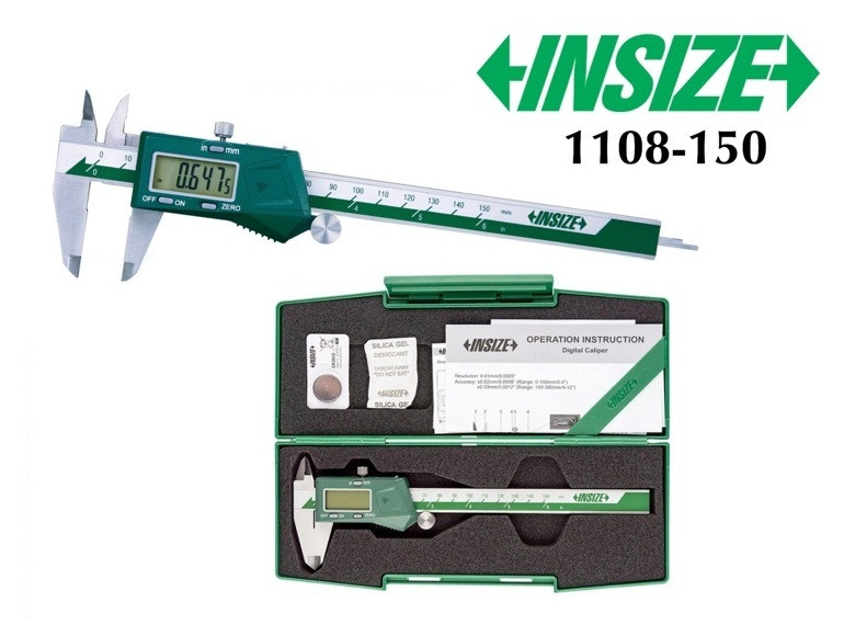 Méréstartomány: 150mm Felbontás: 0,01mm Mélységmérő: szögletes lapos. Nyomógörgős kivitel. Külső belső mérésre. Rozsdamentes / Műanyag házas. Ki/be kapcsoló gomb. MM / Coll- átváltás. Automata kikapcsolás. Gomb elem: CR2032 Adatkimenetes. Megfelel: DIN862 szabványnak. Opcionális tartozék: SPC -adatkábel.