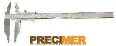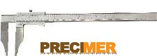 300 mm, rozsdamentes, mérőcsúcsokkal, matt-krómozott, fadobozban mérési tartomány 300 mm, mérőpofa hossza 100 mm, rozsdamentes acél, edzett, nóniusz 1/20 + 1/128” keskenyített pofák belső méréshez (2 x 5 mm = 10 mm)