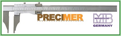 300 mm, rozsdamentes, matt-krómozott, fadobozban mérési tartomány 300 mm, mérőpofa hossza 100 mm, rozsdamentes acél, edzett, nóniusz 1/20 + 1/128” keskenyített pofák belső méréshez (2 x 5 mm = 10 mm)