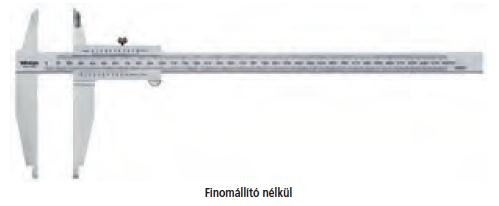 E nóniuszos tolómérő hosszú és hagyományos mérőcsörrel teszi egyszerűvé a mérést. Jellemzői:Belső és külső méret közvetlen leolvasása a felső és alsó skála segítségével.Alaptest és csúszka edzett roszdamentes acélból. Szállítva: Műanyag tároló dobozban