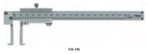 Sorozat 536 Nóniuszos tolómérő - Késél típusú • Speciális kialakítású belső mérésekhez, nehezen elérhető helyeken. • Hosszú, keskeny mérőcsőrrel. Szállítva: Műanyag tároló dobozban