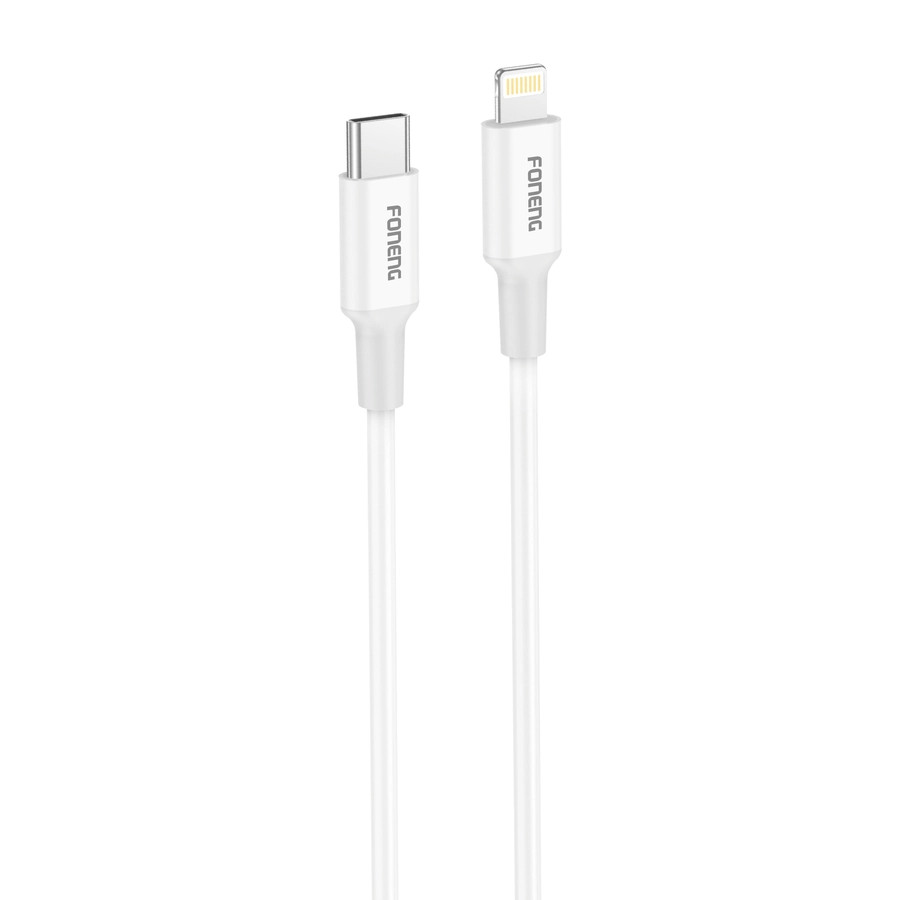 FONENG Adatkábel X106 USB-C - Lightning PD 27W 1.2M Fehér Termékleírás FONENG adatkábel X106 USB-C - Lightning PD 27W 1.2M fehér A Foneng USB/Lightning kábel segítségével gyorsan feltöltheted iPhone-od, iPad-ed, Airpods-od, és az adataid átvitelére is lehetőség van, ha szükséges. Az X106-os modell a PD gyorstöltés funkciónak és az USB C csatlakozásnak köszönhetően, akár