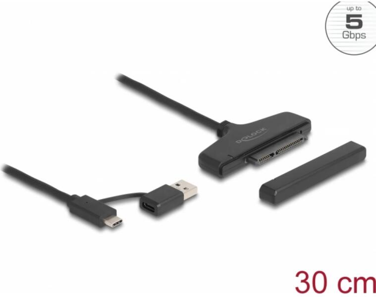 Ez a Delock átalakító USB-C vagy egy A-típusú USB csatolón keresztül asztali vagy hordozható számítógéphez csatlakoztatható. Ennek köszönhetően egy 2.5″ SATA HDD vagy SSD használható egy 22 tűs SA...