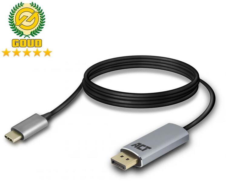 Fekete színű, 1.8m hosszú USB 3.0 Type C - DisplayPort 1.2/1.2a Átalakító kábel.