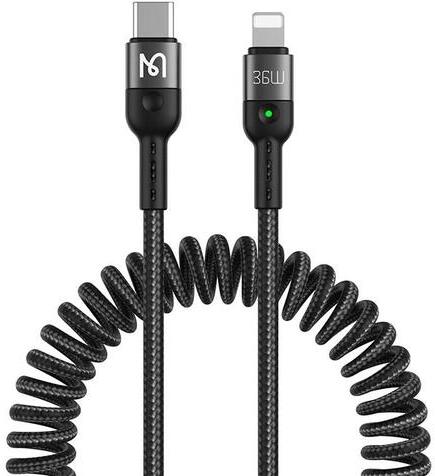 Mcdodo CA-1960 USB-C to Lightning spring cable, 36W, 1.8m (black) The Mcdodo CA-1960 cable combines versatility, durability and high performance. It offers 36W of power and supports fast PD charging, so it will quickly renew your equipment's energy. In addition, it allows data transfer at 480 Mbps. Support for fast charging The Mcdodo CA-1960 supports PD technology, allowing you to charge your App