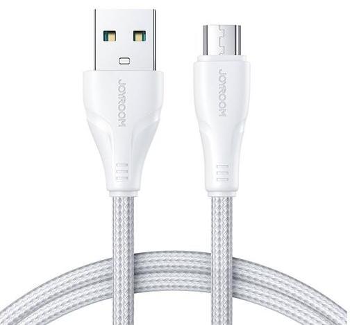 Cable for Micro USB-A / Surpass / 2m Joyroom S-UM018A11 (white) Fast charging, lightning-fast data transmission and a length just right to use your phone comfortably while charging - all this will be provided by the Joyroom cable. The product is distinguished by its sturdy construction, it is fully safe for the charged devices, and the 2.4 A intensity allows you to replenish your phone to 60% in o