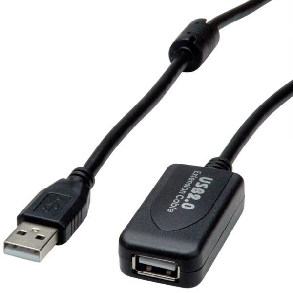 Fekete színű, 15m hosszú USB - USB Hosszabbító kábel.