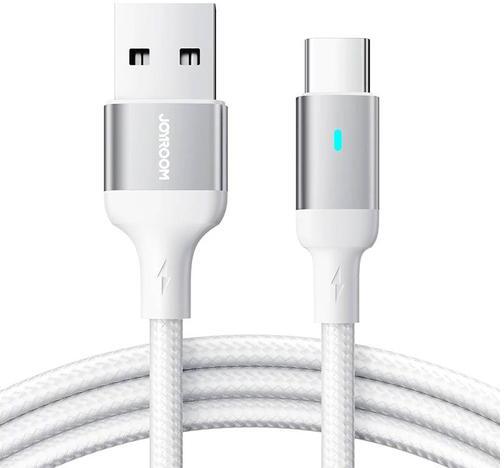 USB-A/USB-C cable, 3A, 3m Joyroom S-UC027A10 (white) Renew your smartphone's power and transfer files at the same time. Joyroom's USB-A/USB-C cable operates at up to 3A and can transfer data at 480 Mbps. It offers a subtle backlight that will make it easy for you to track down your phone while charging at night. The product is made of sturdy materials, such as aluminum alloy and nylon, so it is du