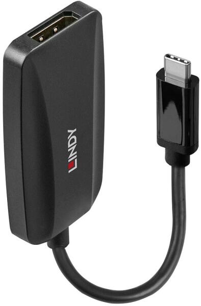 Fekete színű, 13cm hosszú USB 3.0 Type C - DisplayPort 1.4 Átalakító kábel.