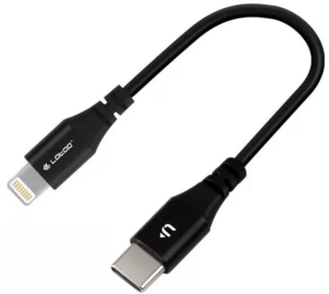 Fekete színű, 6cm hosszú USB 2.0 Type C - Lightning Töltő/adatkábel.