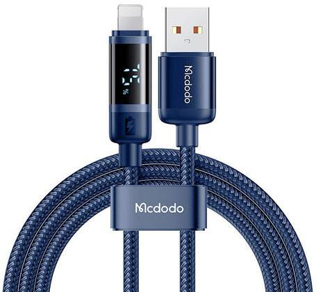 Mcdodo CA-5001 USB-A to Lightning cable, 100W, 1.2m (blue). Introducing the Mcdodo CA-5001 cable from the Comet series, where innovation meets elegant design. This 1.2-meter cable, was developed with Apple devices in mind. It offers a charging current of 3A, providing fast charging. Data synchronization, robust construction and a practical digital display are additional advantages of the cable. Pr