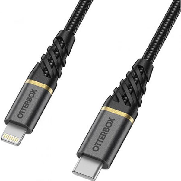 Fekete színű, 2m hosszú USB 2.0 Type C - Lightning Átalakító kábel.