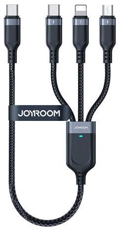 Joyroom S-A18 USB-ről USB-C-re 2x Lightning Micro multifunkciós kábel A Joyroom S-A18 kábelt úgy tervezték, hogy megfeleljen a mai felhasználók változatos töltési igényeinek. Három különböző csatlakozóval - USB-C, Lightning és Micro - ideális az eszközök széles skálájának töltésére és szinkronizálására, beleértve az okostelefonokat, tableteket, powerbankeket és k