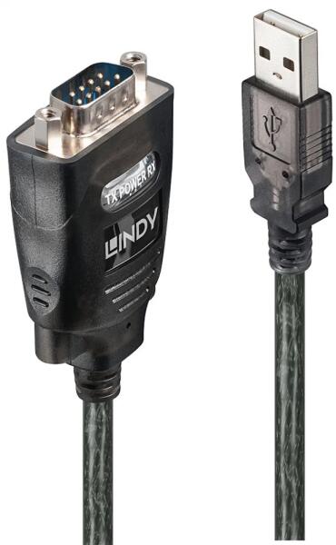 Fekete színű, 1m hosszú USB - Soros Átalakító kábel.