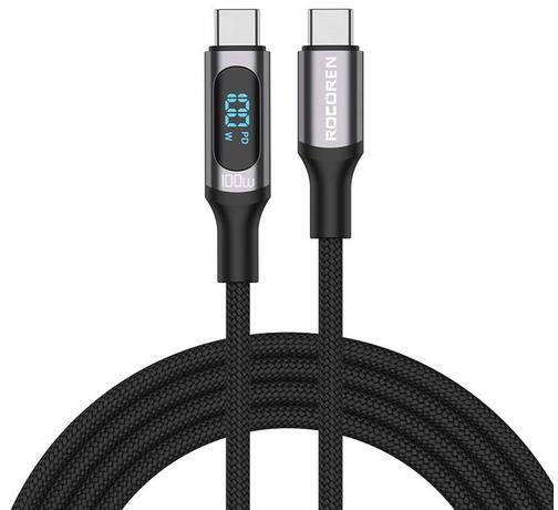 Rocoren Digital USB-C to USB-C fast charging cable, PD, 1m (gray) The Rocoren cable is the perfect solution for those who appreciate speed and reliability when charging their devices. It offers 100 watts of power and 5A amperage, so you can restore power to your devices in no time. It is equipped with a small display that provides real-time information about the charging power. Made of high-qualit