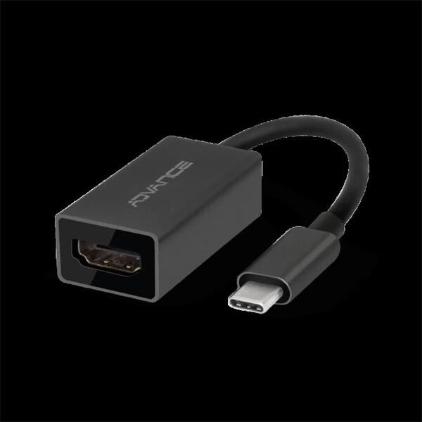 Fekete színű, 10cm hosszú USB 2.0 Type C - HDMI 2.0 Átalakító kábel.
