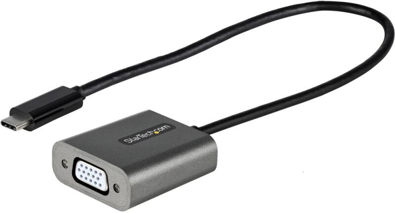 Szürke színű, 30cm hosszú USB 2.0 Type C - VGA/D-Sub Átalakító kábel.