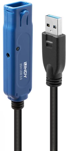 Fekete színű, 30m hosszú USB 3.0 - USB 3.0 Hosszabbító kábel.