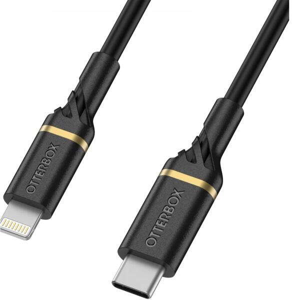 Fekete színű, 1m hosszú USB 2.0 Type C - Lightning Töltő/adat kábel.