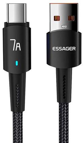 Essager Sunset USB to USB-C 7A 2m cable (black) The Essager Sunset USB/USB-C cable with a length of 2 meters enables charging with 80 watts of power and allows data transfer at 480 Mbps. The accessory is resistant to mechanical damage, so it will serve you reliably for a long time. Durability confirmed by tests Essager Sunset is designed for long-term use. The cable has passed more than 38,000 ben