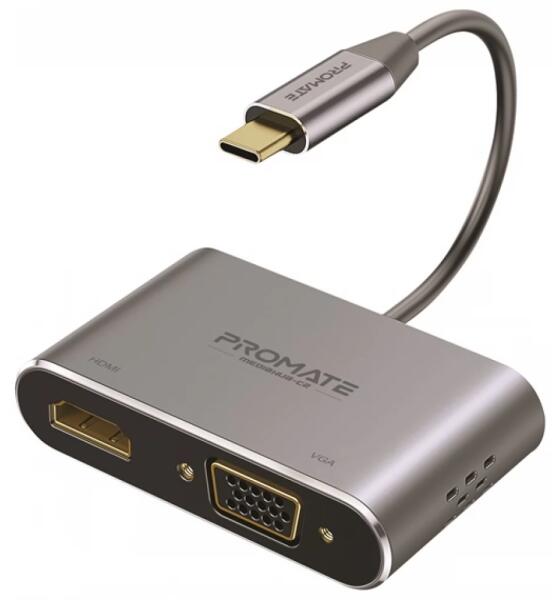Szürke színű, 10cm hosszú USB 2.0 Type C - VGA/D-Sub + HDMI Átalakító kábel.