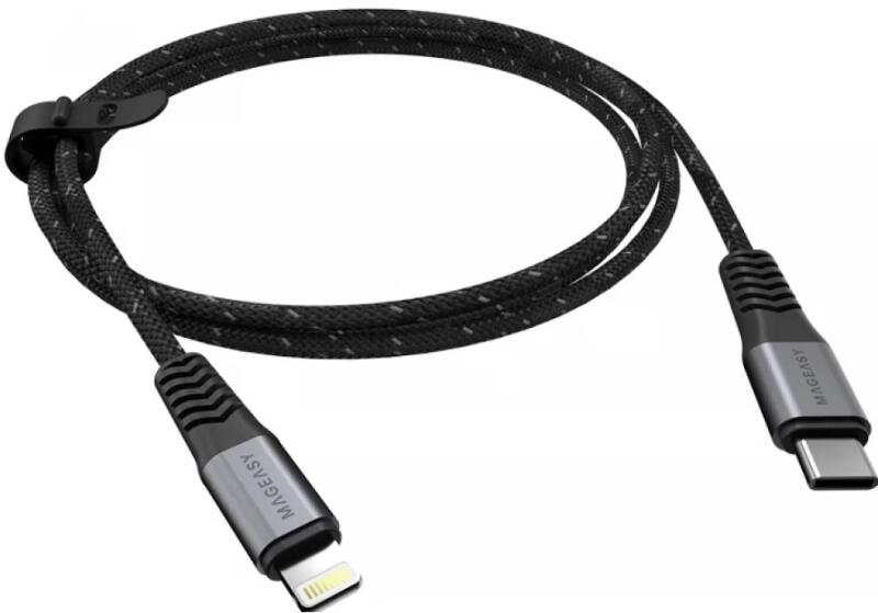 Fekete színű, 1.5m hosszú USB 2.0 Type C - Lightning Töltő/adat kábel.
