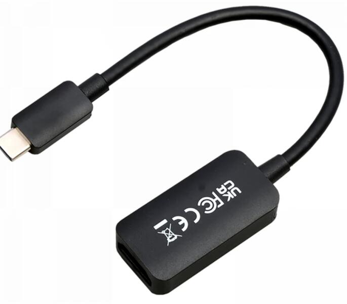 Fekete színű, 10cm hosszú USB 3.1 Type C - HDMI 2.0 Átalakító kábel.