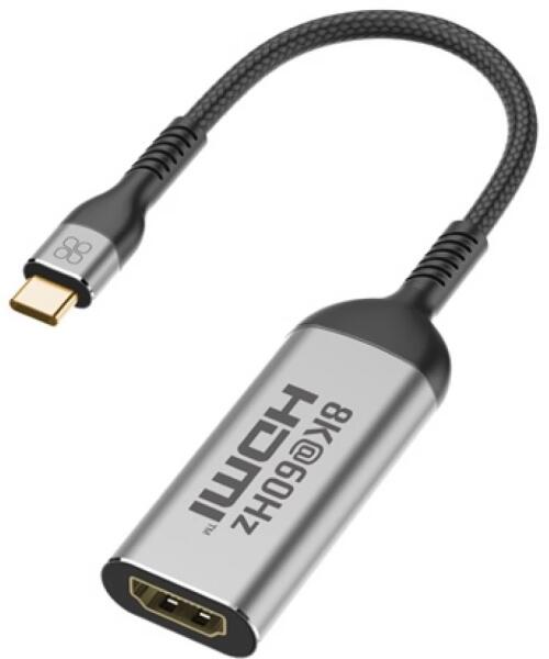 Fekete színű, 10cm hosszú USB 3.1 Type C - HDMI 2.1 Átalakító kábel.