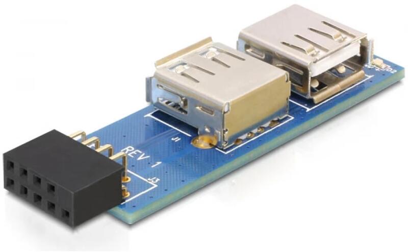 Ez az USB tűs fejléc csatlakoztatható az alaplap szabad USB tűs fejlécéhez, hogy a rendszert belülről 2 USB-A porttal bővítse. Így használhat pl. USB-memóriakártyát vagy USB-WLAN pendrive-ot. - 1...