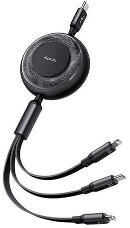 3-in-1 USB-C to USB-C / Lightning / Micro USB cable, Mcdodo CA-5220, 100W, 1.2m (black) The Mcdodo CA-5220 is a 3-in-1 cable that is perfect for everyday use - at home, at work or on the go. Equipped with three output ports, it allows you to charge several devices simultaneously. It also allows you to transfer files at 480 Mbps (USB-C, Lightning), and the retractable design keeps things neat and e