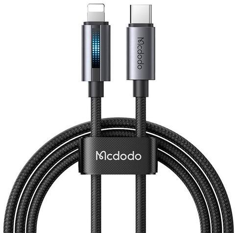 Mcdodo CA-5710 USB-C to Lightning cable with 36W flashing light 1.2m (black). The Mcdodo CA-5710 cable is a modern solution for users of iPhones and other Apple devices who are looking for fast and reliable charging. With 36W power support and a built-in LED light, this cable not only provides instant charging, but also makes it easy to find in the dark while offering a sleek look. Pulsating light