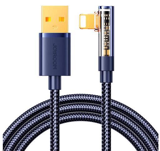 Cable for USB-A / Lightning / Angle / 1.2m Joyroom S-UL012A6 (blue) Convenient, instant charging with the ability to play without overheating your phone? It's possible with Joyroom. The fast charging cable with a 90° curved connector allows you to use your phone while it's plugged into the charger. It provides an amperage of 3A and allows data transfer at 480 Mbps. It features a sturdy constructi