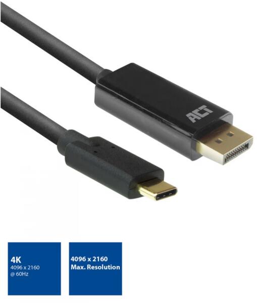 Fekete színű, 2m hosszú USB 3.0 Type C - DisplayPort 1.2/1.2a Átalakító kábel.