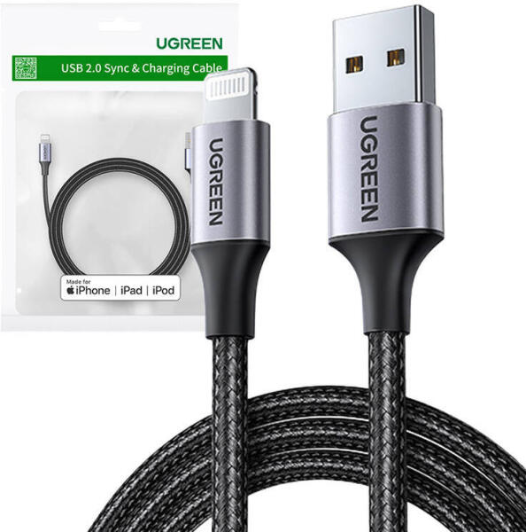 Ugreen US199 60158 Kábel USB-A / Lightning Csatlakozókkal MFi Tanúsítvánnyal 2m - Fekete Felejtsd el az aggódást a töltés és adatátvitel miatt! Az Ugreen US199 kábel tökéletes megoldás iPhone-okhoz, iPadekhez és iPodokhoz. Az MFi tanúsítványnak köszönhetően nyugodt lehetsz afelől, hogy az eszközeid teljesen biztonságban vannak. A nejlonfonat és a masszív kialakítás nem